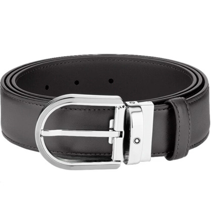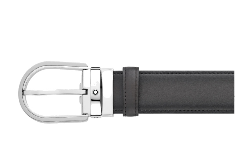 Кожаный ремень с пряжкой в форме подковы серого цвета 35 мм от магазина премиальных ручек Premium Pens в Липецке.